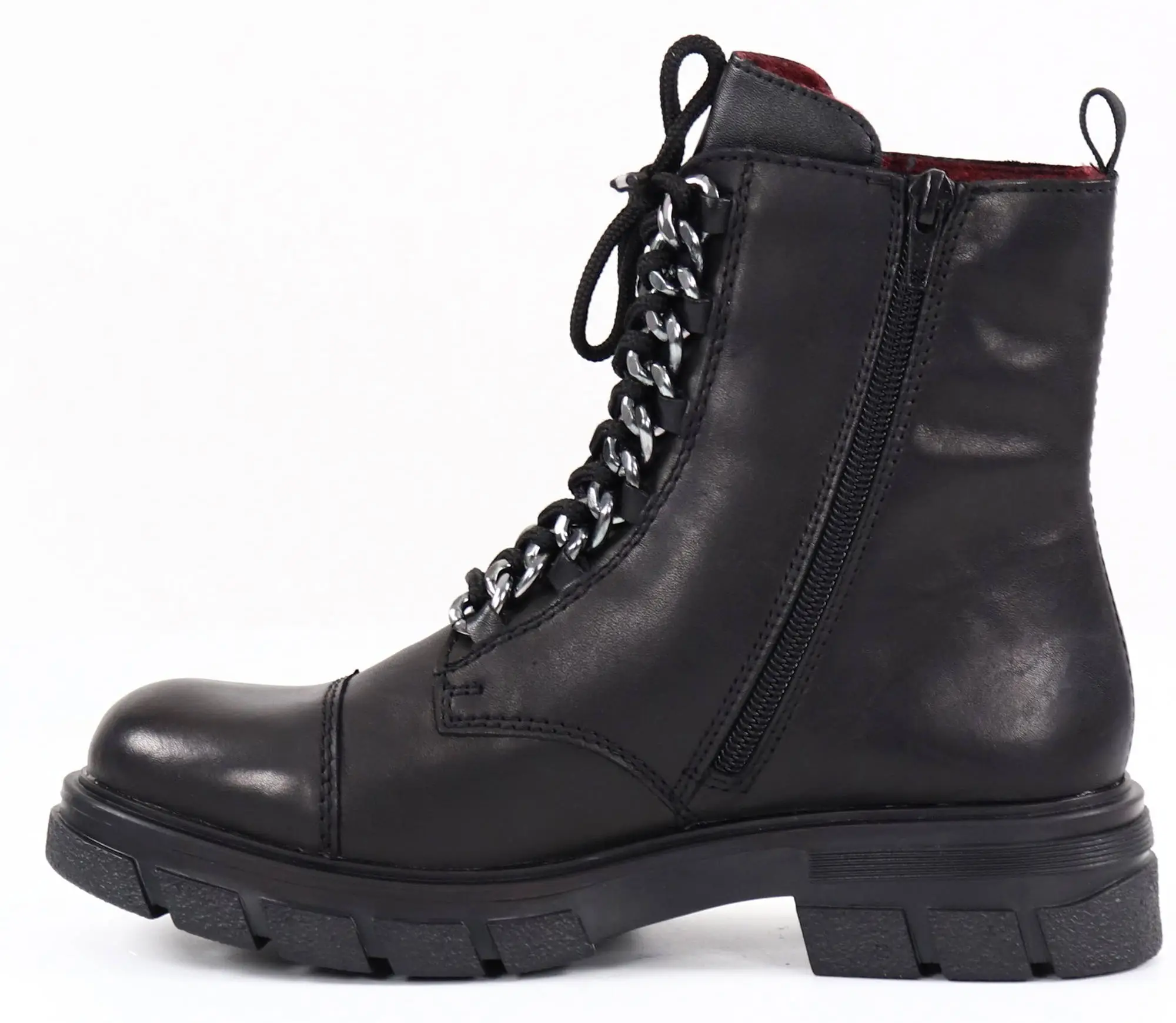 – Sisäsivulla vetoketju, edessä nauhat yksityiskohdilla