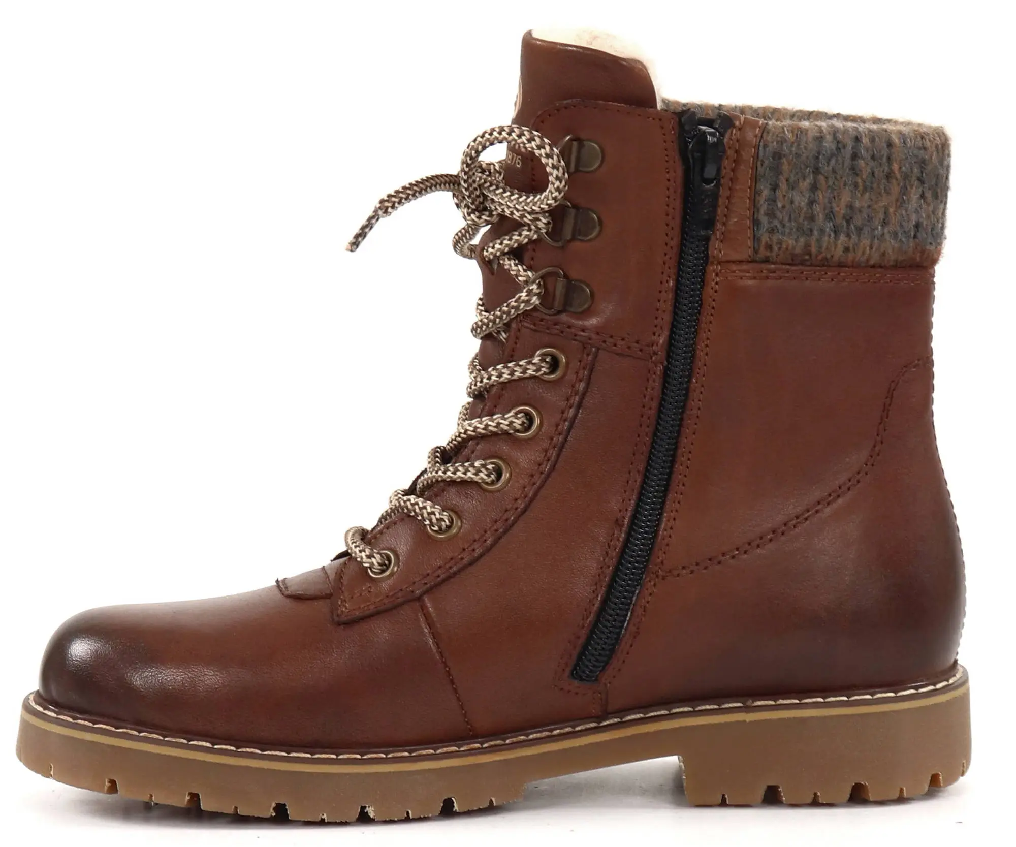 – Päällinen nahkaa, varrensuulla neulosta